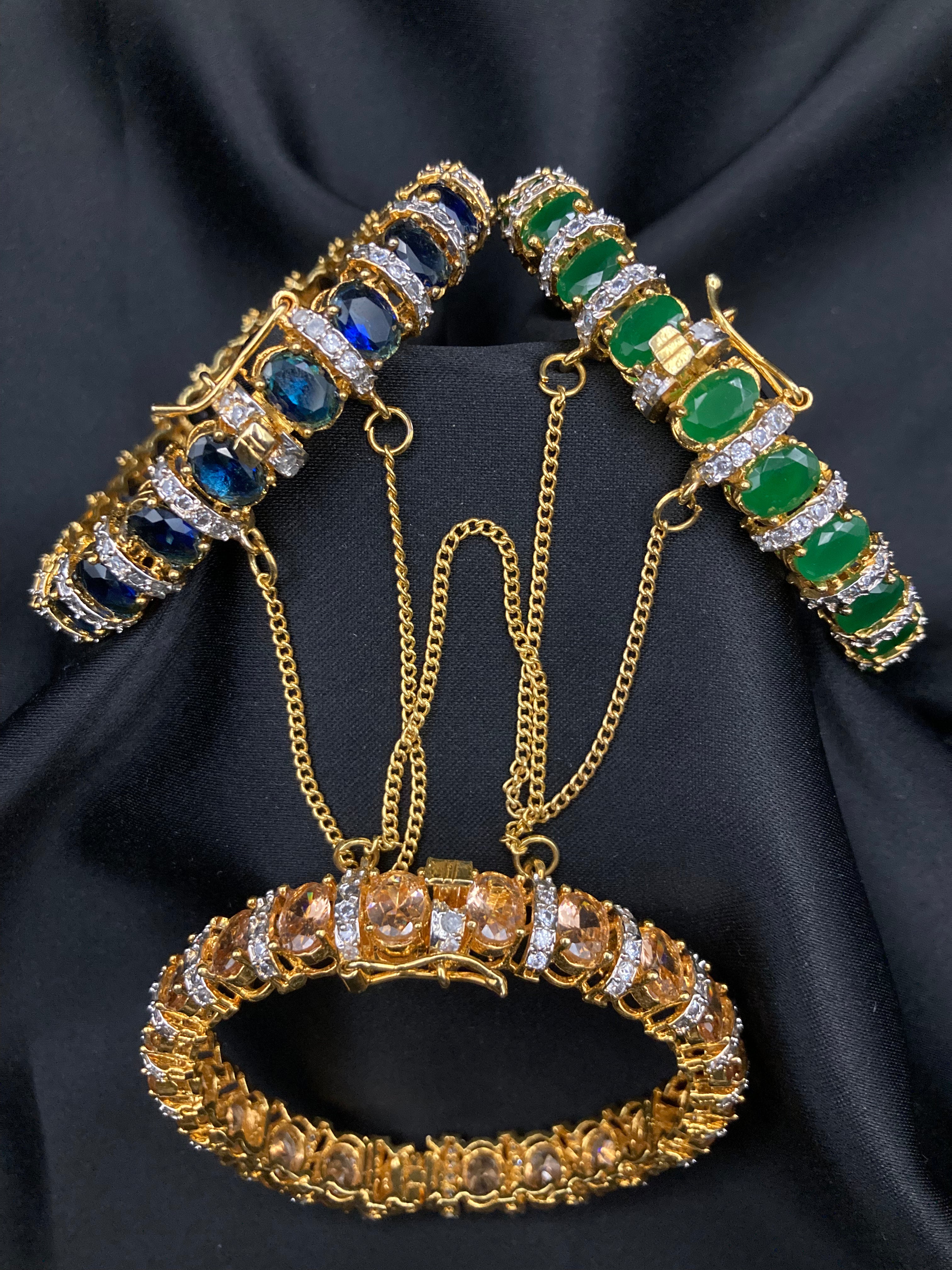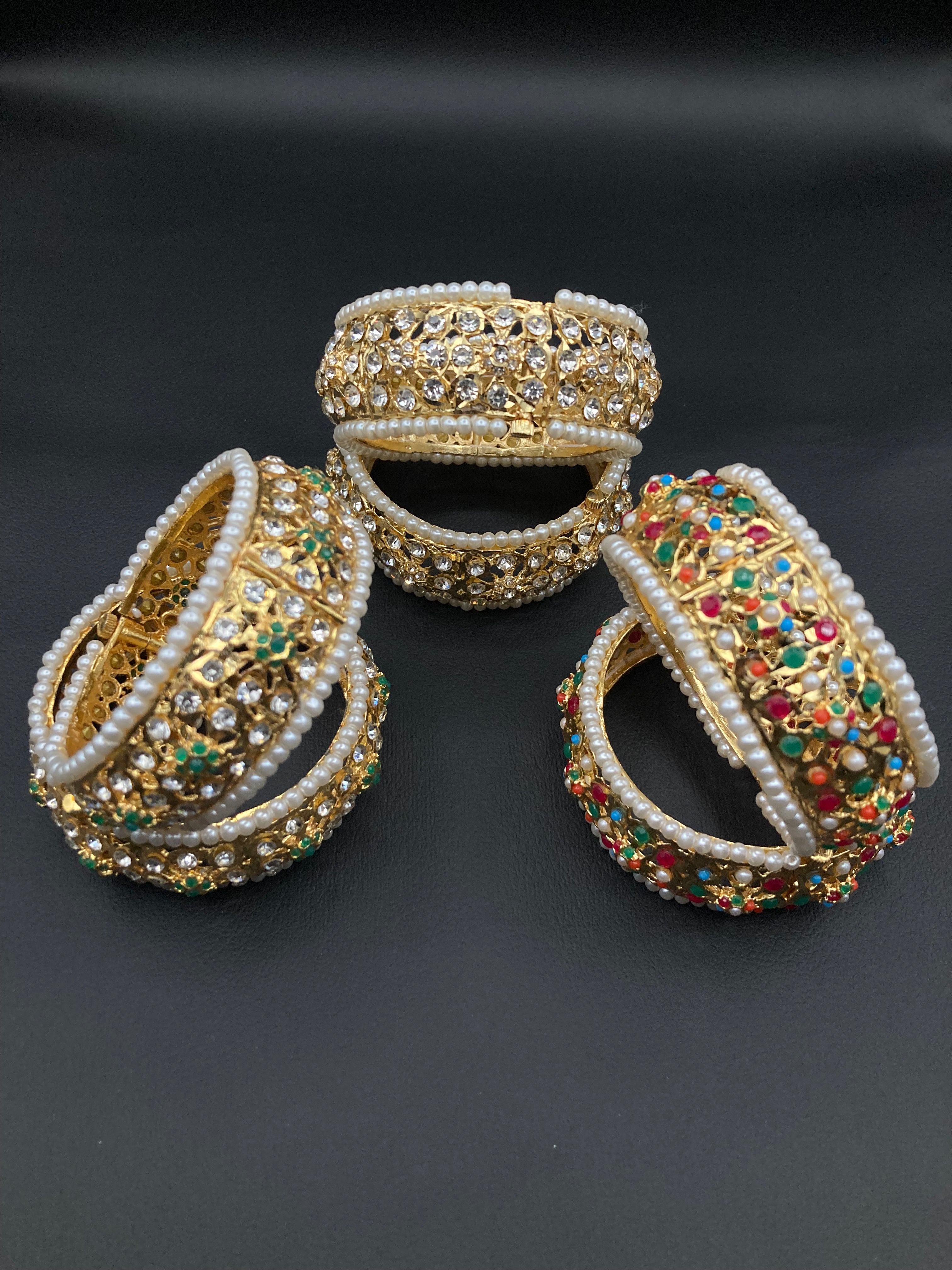 Gold Plated Hyderabadi Nauratan Colour Stones Openable Bangle