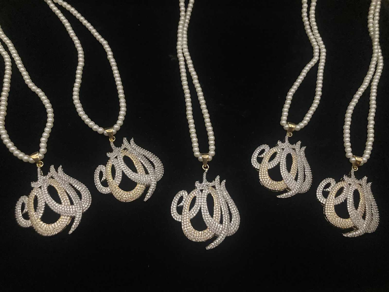 Premium Quality Gold And Rhodium Plated Zircons Studded Big Size ALLAH Name Pendant